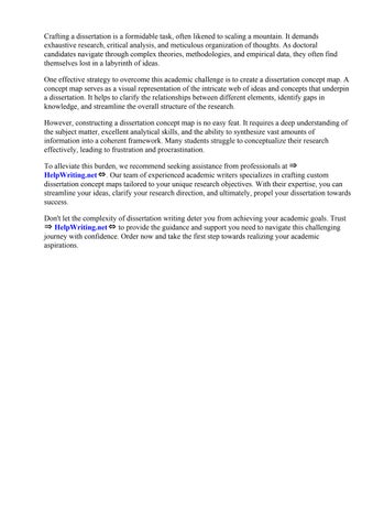 To alleviate this burden, we recommend seeking assistance from professionals at ⇒ HelpWriting.net⇔. Our team of experienced academic writers specializes in crafting custom dissertation concept maps tailored to your unique research objectives. With their expertise, you can streamline your ideas, clarify your research direction, and ultimately, propel your dissertation towards success.