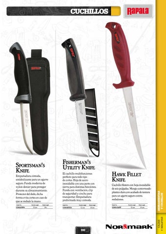 Cuchillo filetero con hoja inoxidable de seis pulgadas. Mango contorneado plástico duro con acabado de textura para un agarre seguro contra resbalones. Model No.