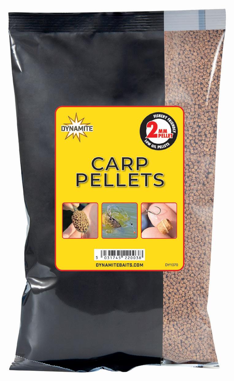 • Pellets para carpas de 2 mm, bajos en aceite y respetuosos con la pesca
