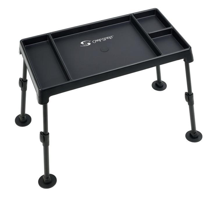 Todas las patas son totalmente ajustables para adaptarse a las ubicaciones menos cómodas de los puestos de pesca.