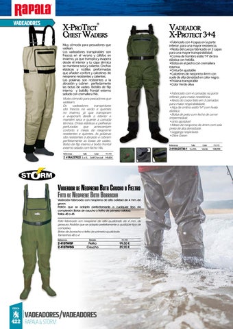 Muito cómodo para pescadores que vadeiam. Os vadeadores transpiráveis são frescos no verão e quentes no inverno, já que transpiram e evaporam desde o interior e mantém seca e quente a camada térmica. Cintas elásticas e joelheiras perfuradas que acrescentam conforto e meias de neopreme resistentes e quentes. As polainas são resistentes à abrasão e cobrem perfeitamente as botas de vadeo. Bolso de flip interno e bolso frontal externo selado com fecho Ykk. Referencia Talla Color
