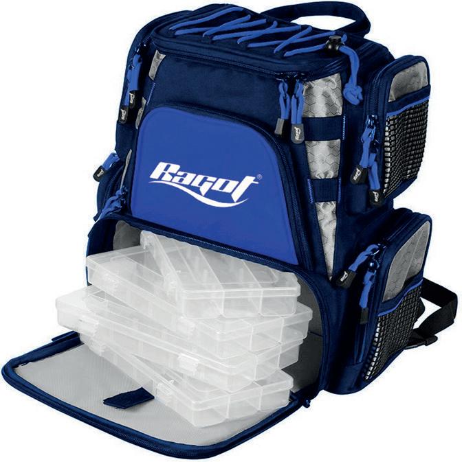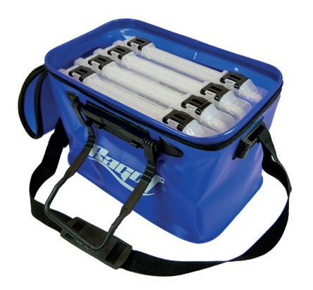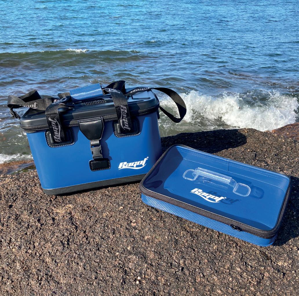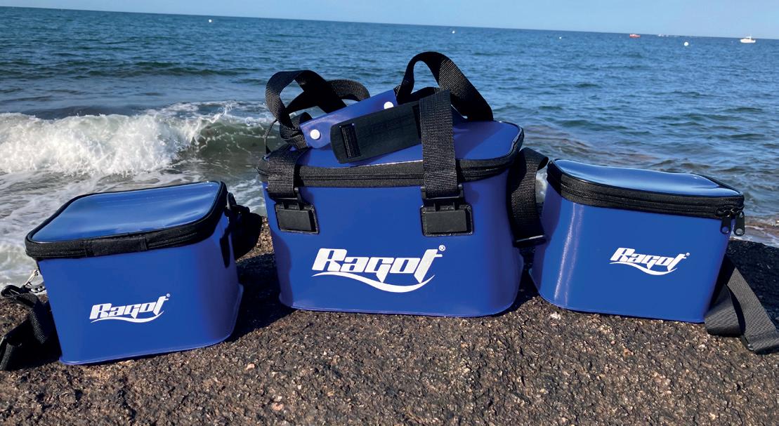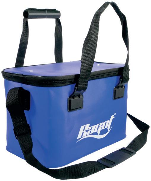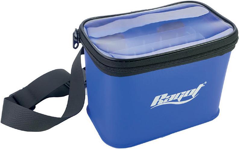 Bakkan de alta calidad. Para colocar las cajas de señuelos y mantenerlas 100% secas. Tapa moldeada con logotipo RAGOT que cubre completamente la parte superior de la bolsa. EVA de 1,5 mm con diseño tramado 3K. Base reforzada antideslizante. Cremallera sobredimensionada de tamaño 10. Imán para abrir y cerrar rápidamente la bolsa. Clip para asegurar la bolsa durante el transporte. 2 asas. Correa ajustable para el hombro. Volumen : 26 L.