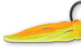 HOOK - Extra Long Z-Bend Hook Leg Ensures Soft Plastics Will Not Hinder Action When Rigged JIG - Articulated Jig Head Design Allows Presentation To Flow And Move Naturally Recessed Eye • Glitter Finish