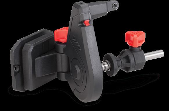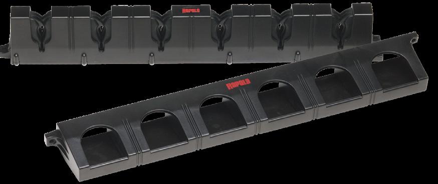 Long lasting jaws hold many rod blank sizes. 16" on center interlocking system. Base grip holder supports rods eliminating rod eyelet damage. Mounts vertical or horizontal.