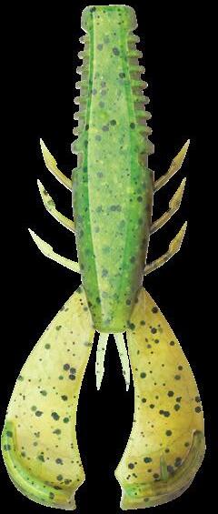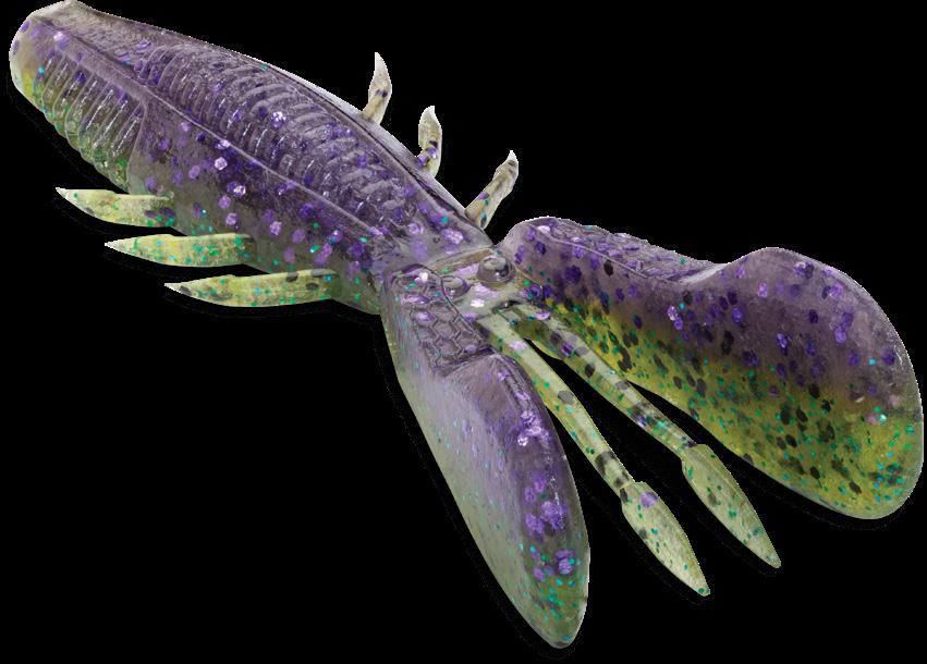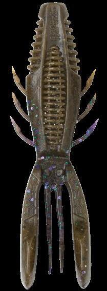 Tight kicking action claws • Perfect for flipping, punching, dragging or a trailer • Soft ribbed hook slots on the back to protect hook point • Smart Injection Technology ® combines custom combinations of color, flake, salt and scent, that are added precisely where needed for the perfect presentation