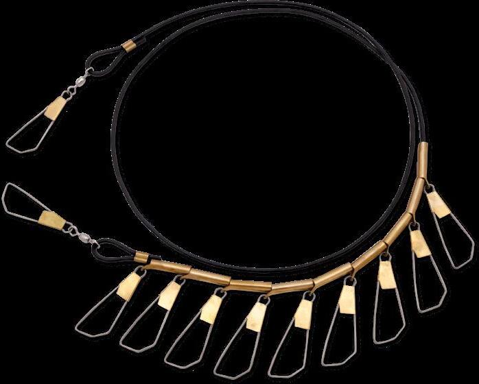 Corrosion resistant, 5' 6" vinyl coated stainless steel cable is rigged with nine solid brass sliding-sleeve clasps and two swivel end clasps. Rated for 300 lb. capacity.