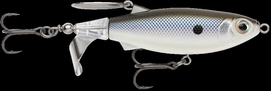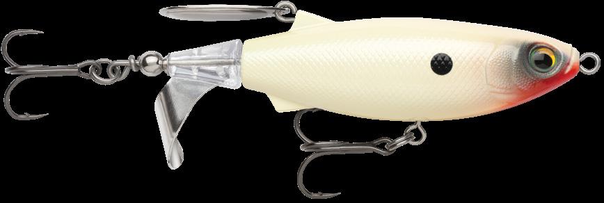 The ClapTail™ 110 is a topwater bait with a metal prop and back blade that collide when retrieved, producing a unique two-tone fish attracting sound. The durable body and balanced weight ensure long casts and a steady retrieve, while the built-in belly swivel reduces leverage to keep fish pinned.