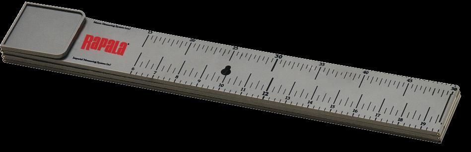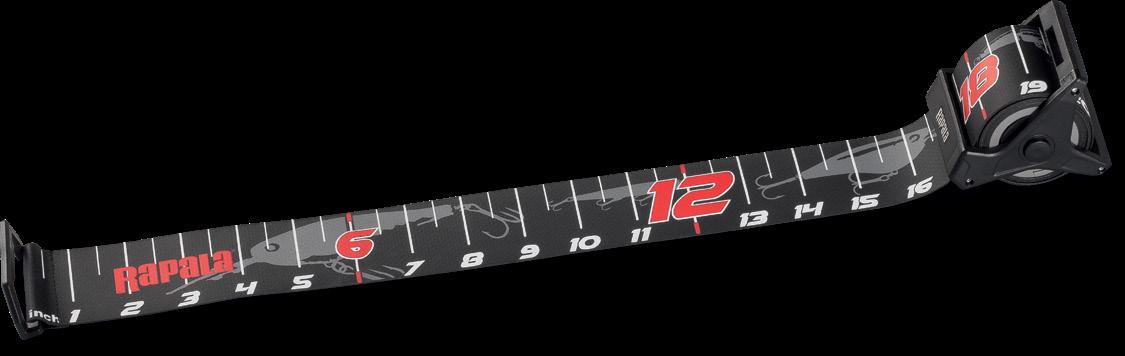 Spring loaded retractable ruler for easy storage. Oversized, easy-toread numbers, in 1/2" increments up to 60." Non-reflective surface ensures length shows in photos. Made from a long-lasting, UV protected, waterproof material. Flip-up nose board.