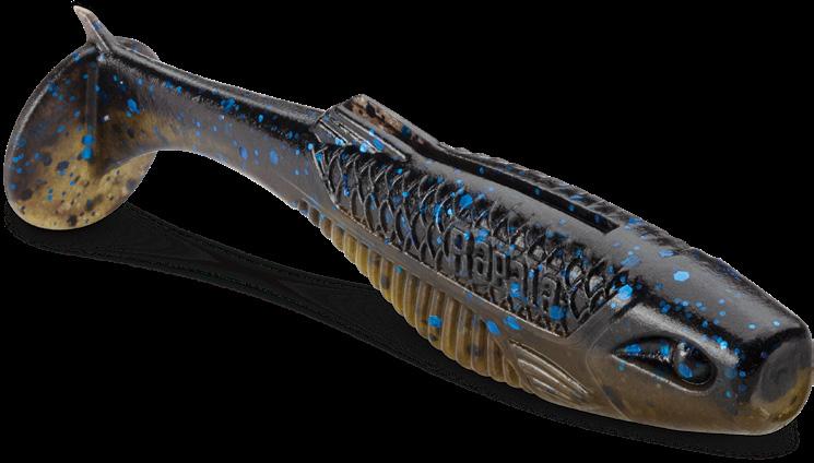 Subtle kicking action • Rigs perfectly on a swimbait jig head, belly-weighted swimbait hook or as a trailer
