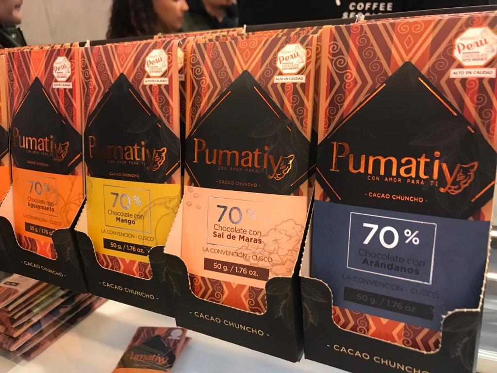 El cacao peruano y sus derivados como nibs, coberturas y tabletas bean-to-bar con super ingredientes de la biodiversidad peruana estuvieron muy bien representados por 13 expositores, cooperativas y empresas: Cooperativa