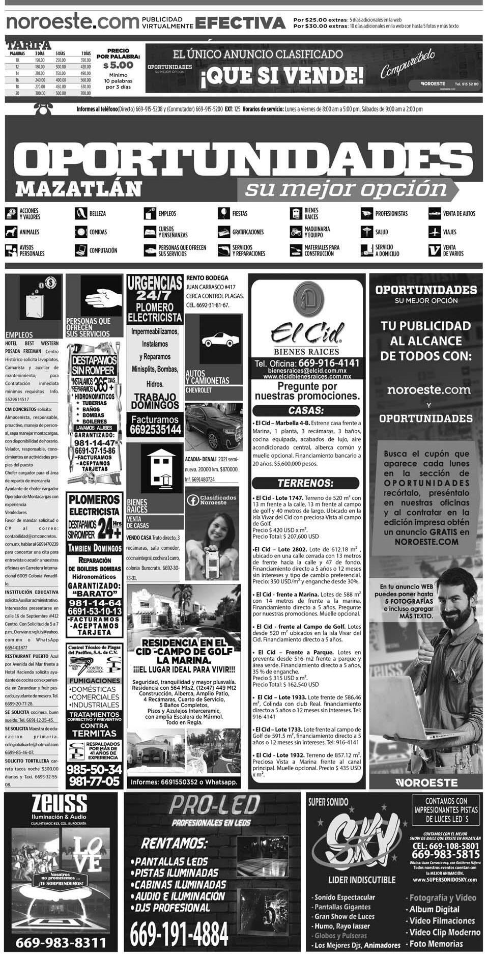 NOROESTE .COM 2H OPORTUNIDADES Miércoles 28 de diciembre de 2022. Mazatlán, Sinaloa