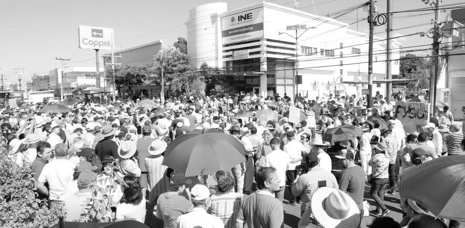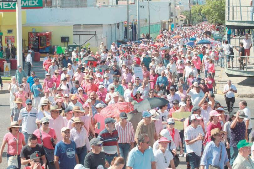 MAZATLÁN._ Con consignas como “El INE no se toca” y “No a la dictadura”, más de mil personas se reunieron en Mazatlán con la demanda de que no se le hagan adecuaciones al Instituto Nacional Electoral.