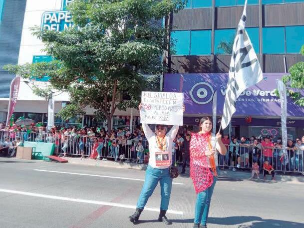 Familiares de personas desaparecidas se manifestaron en el desfile conmemorativo de la Revolución Mexicana, en Culiacán.