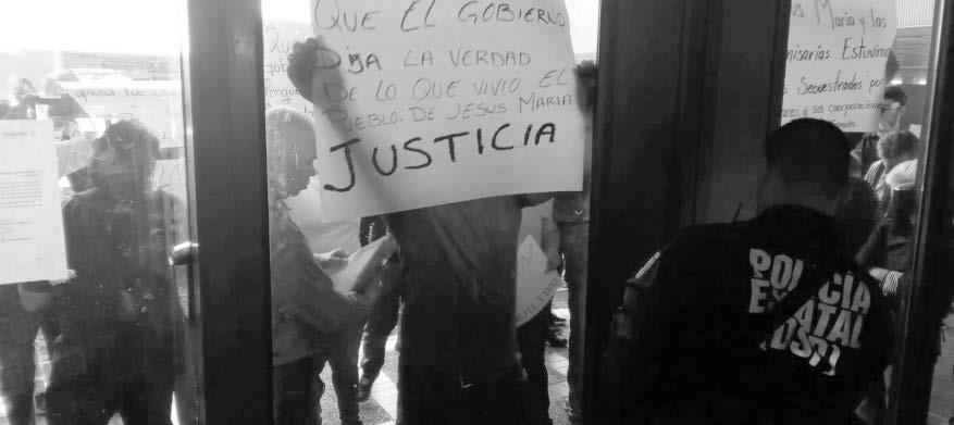 Los manifestantes acusaron al Ejército Mexicano de encabezar actos de terrorismo en contra de la población, así como violar derechos humanos de los habitantes de Jesús María y zonas aledañas.