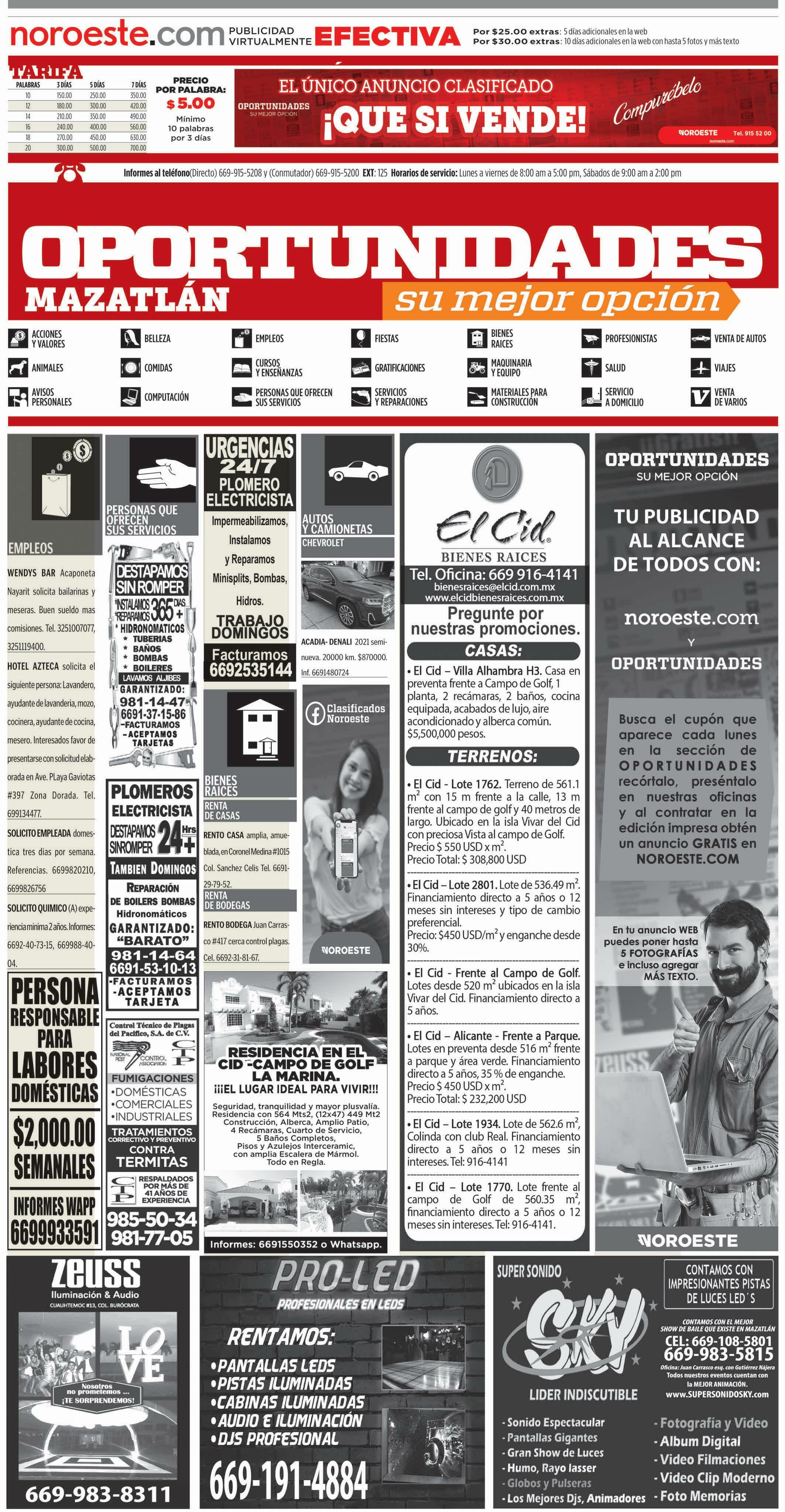 NOROESTE .COM 2H OPORTUNIDADES Martes 10 de enero de 2023. Mazatlán, Sinaloa