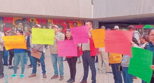 Trabajadores de la Secretaría de Salud basificados en 2022 se manifestaron en el Palacio de Gobierno de Sinaloa para que se les otorguen prestaciones y derechos que sus compañeros basificados con anterioridad sí ostentan. 1B