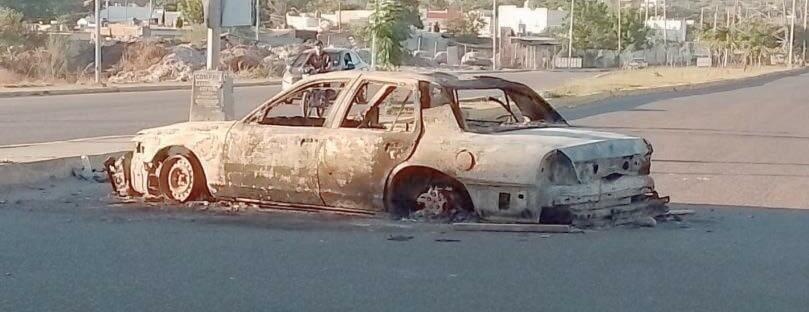 Uno de los vehículos dañados durante la jornada de violencia tras la detención de Ovidio Guzmán en Culiacán.