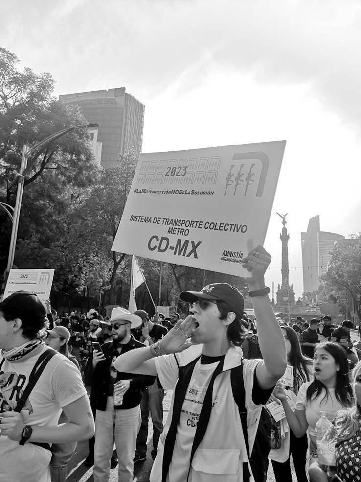 su participación en la marcha en contra de la militarización es aparte, pues su único propósito es recordarla.