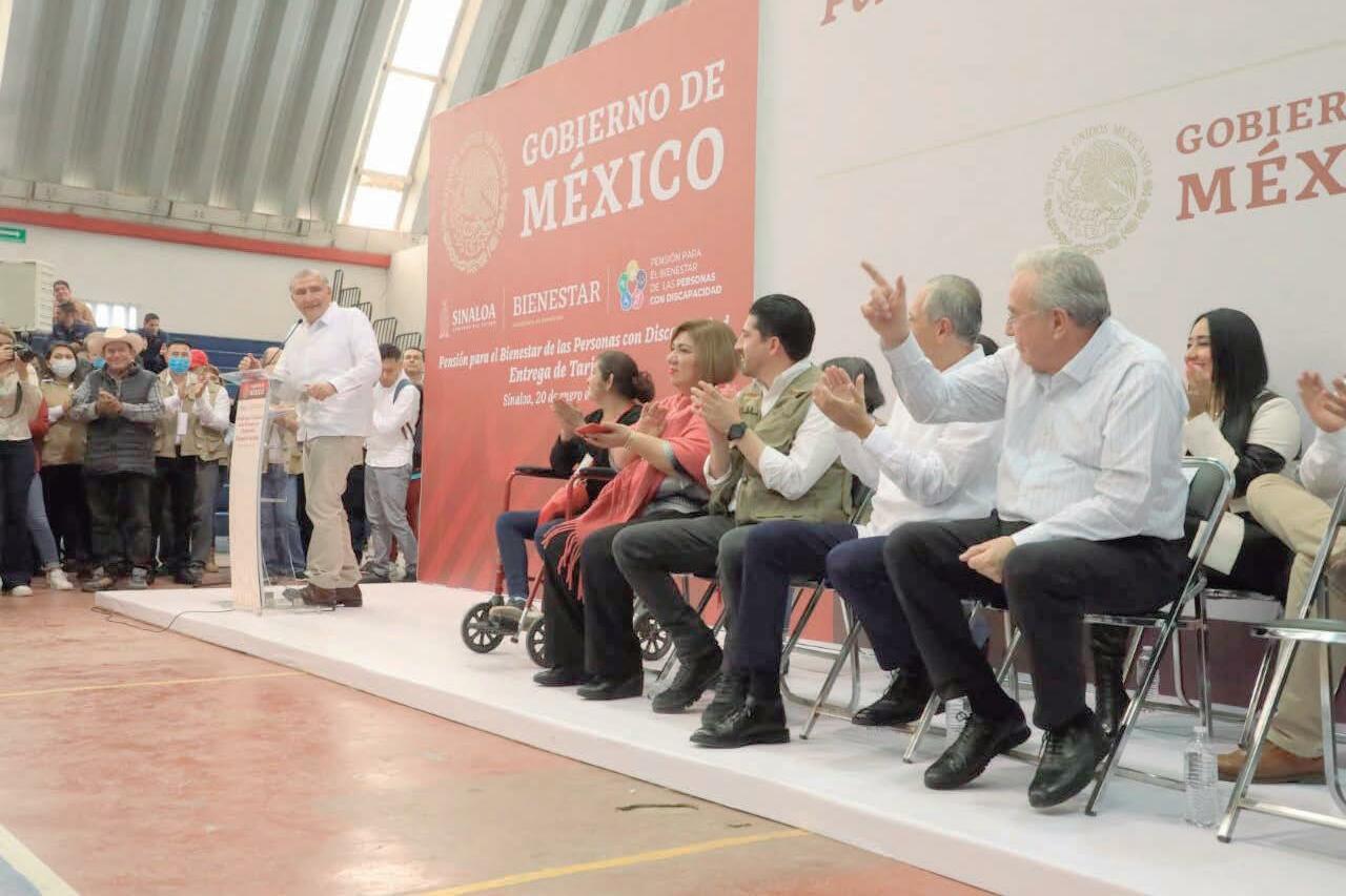 El Secretario de Gobernación, Adán Augusto López Hernández acompañó al Gobernador Rubén Rocha Moya en la entrega de tarjetas a personas con discapacidad, donde rechazó el estigma negativo para Sinaloa. 1B y 3B