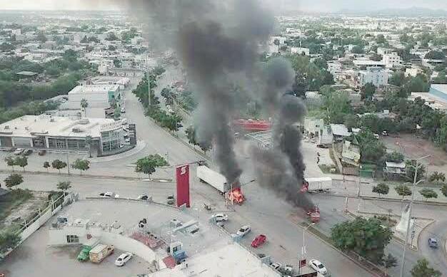 Incendios durante la jornada de violencia que se registró en Sinaloa el 5 de enero pasado.