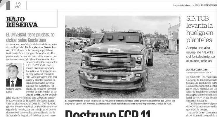En una editorial publicada el lunes, El Universal afirma tener pruebas y no solo dichos sobre Genaro García Luna.