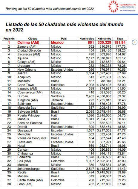 Sale Culiacán de ranking de las ciudades más violentas de México, pero...