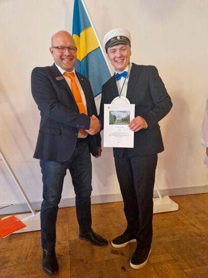 På bilden syns undertecknad tillsammans med Edvin Sahlberg, stipendiat, Bispgårdens Tekniska College. Edvin fick den personliga motiveringen: ”Den här eleven har varit närvarande och aktivt deltagit i sina lektioner. Med sin positiva attityd skapat en bra arbetsmiljö för såväl sina klasskamrater som lärare. Med sin teamkänsla fått sina klasskamrater att känna sig både stöttade och delaktiga. En som satsat sin tid och visat engagemang både teoretiskt och praktiskt.”