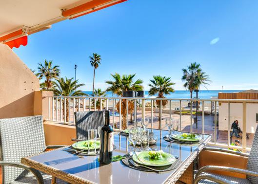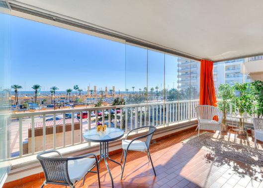 Lägenheten har ett rymligt och ljust vardagsrum med direkt utgång till terrassen. Från terrassen har du öppen utsikt över staden och Medelhavet.