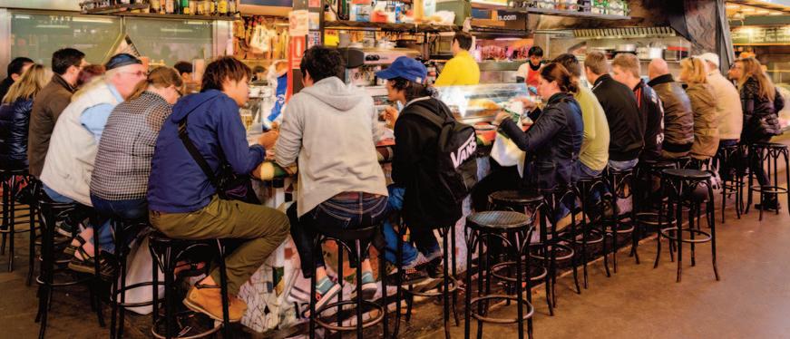 Hvis du har begrænset tid eller penge, ikke orker at læse en velskrevet 8-siders spansk menu igennem eller blot ønsker et enkelt hjemmelavet måltid, er El Menu de día (dagens måltid) en overkommelig og hurtig måde at spise sig mæt på i Spanien. Normalt inkluderer måltidet en primer plato (forret), segundo plato (hovedret) og postre (dessert). Derudover serveres der brød og valgfri drikkevare, herunder et glas af husets vin, som normalt er mere end drikkeligt. Det er svært at forestille sig, hvordan en restaurant selv her i det sydlige Spanien kan klare at tilberede et tre-retters måltid for under 10 euro og stadig kunne dække råvarer, løn, husleje, papirduge, og strøm til bl.a. tv-skærmen, der synes at være tændt 24 timer i døgnet. Men i Málaga er der faktisk en bar, der serverer en rigtig Menu del día til kun fem euro! Vi tager dig med til den ydmyge, men meget populære Bar / Cafetéria Mercado de Huelin.