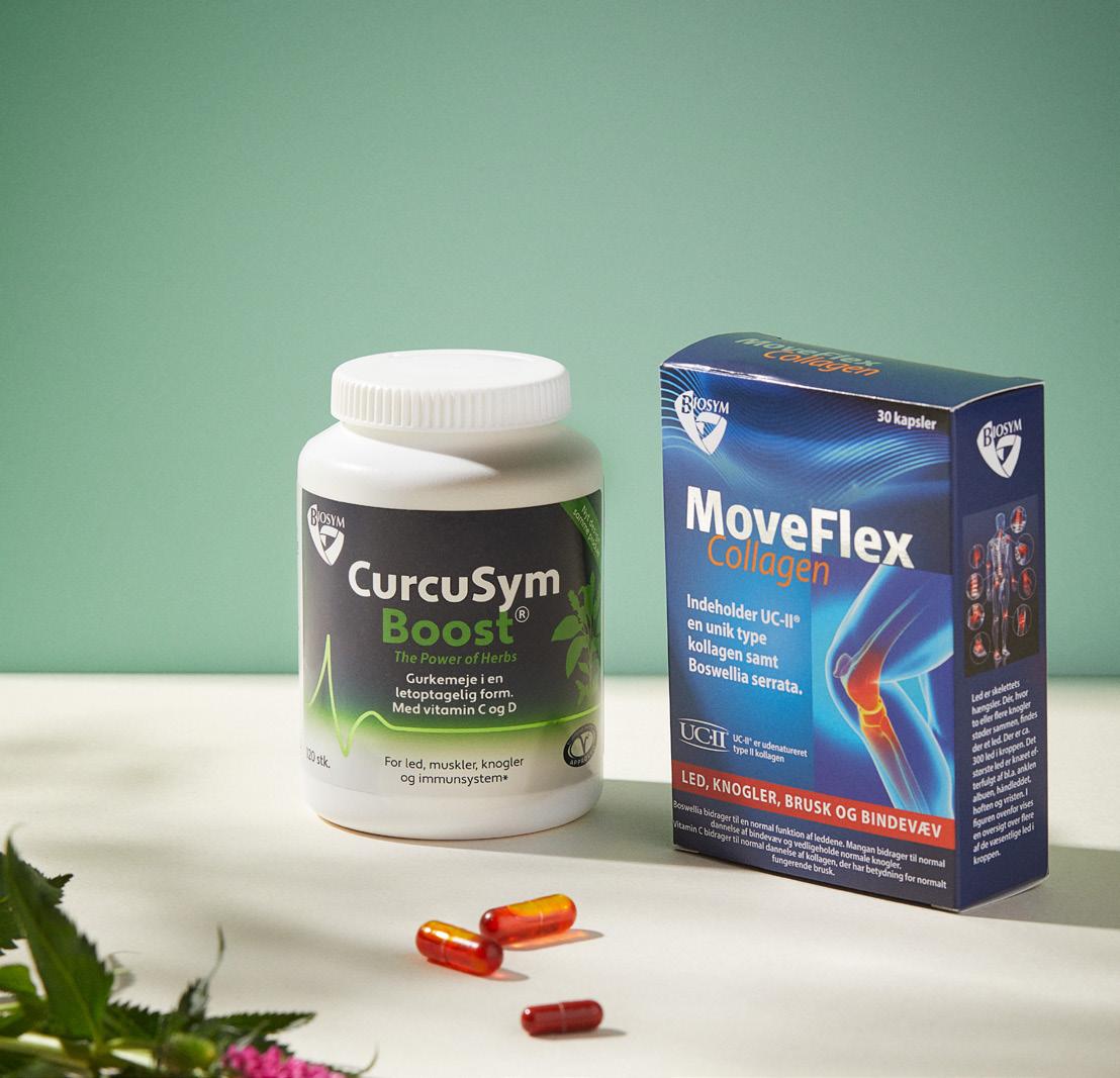 Kombinér MoveFlex Collagen og CurcuSym Boost for stærke led, knogler og muskler.