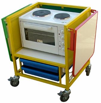 With a cooker and hob included this mini cooking trolley can be wheeled in to any small room for demonstrations.
