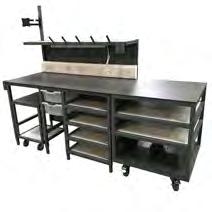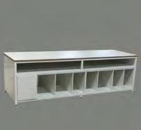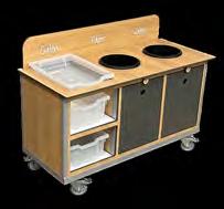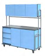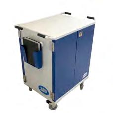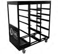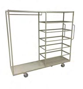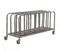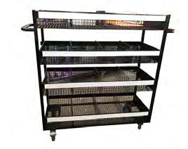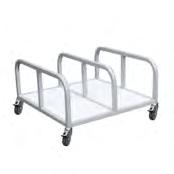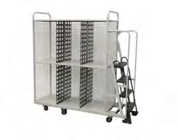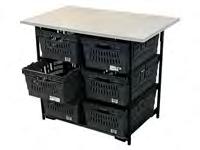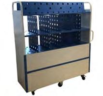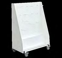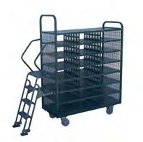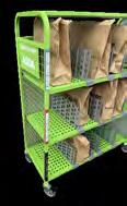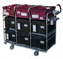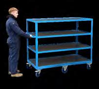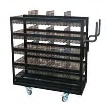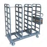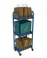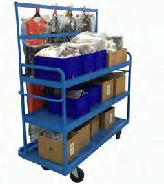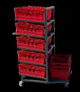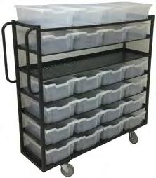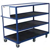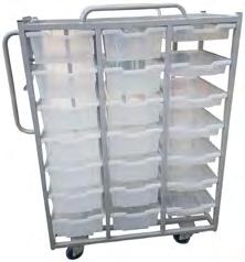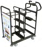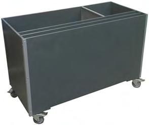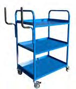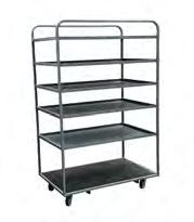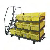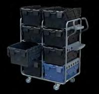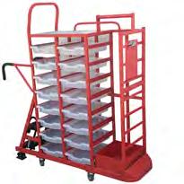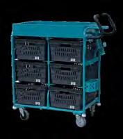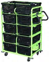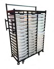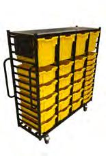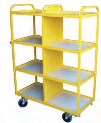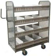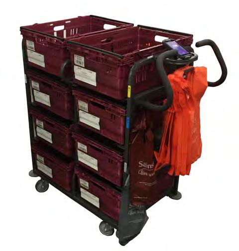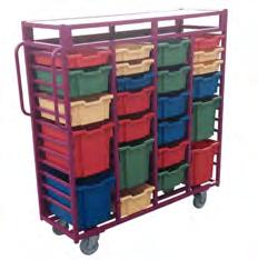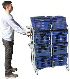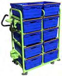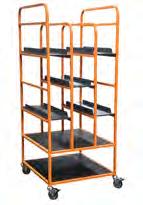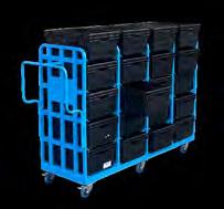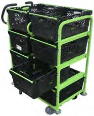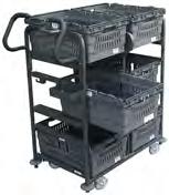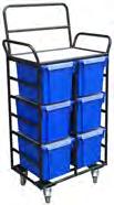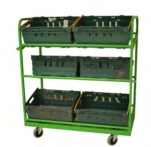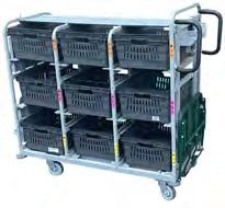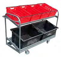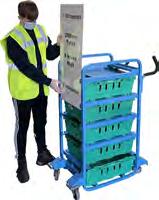 The design of these trolleys gives open access to the contents of any of the tote boxes on them. A header can be slotted in to allow them to be used as a merchandising or “point of sale”trolley. When not in use they nest together as shown to save space.