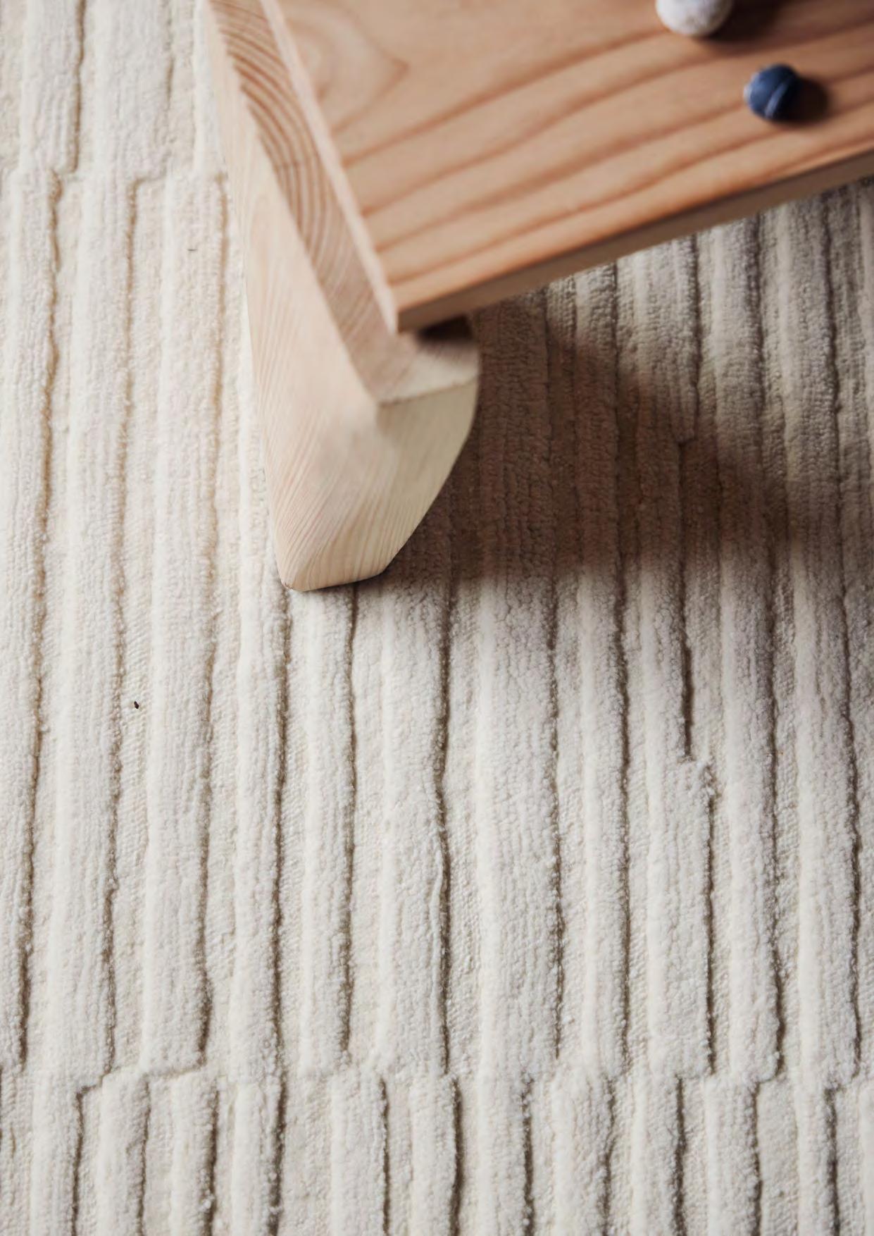 The Atoll collection is inspired by the world of art and graphical elements. Through calm minimalism and abstract expressionism, the collection is designed to infuse the home with a welcoming tactile quality, achieved through hand-drawn elements that add a personal touch to the rugs.