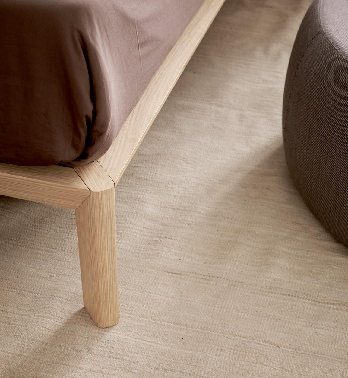 Detail of the wooden profile that connects the panels of the Goa bed. Detalle del perfil de madera que une los paneles de la cama Goa.