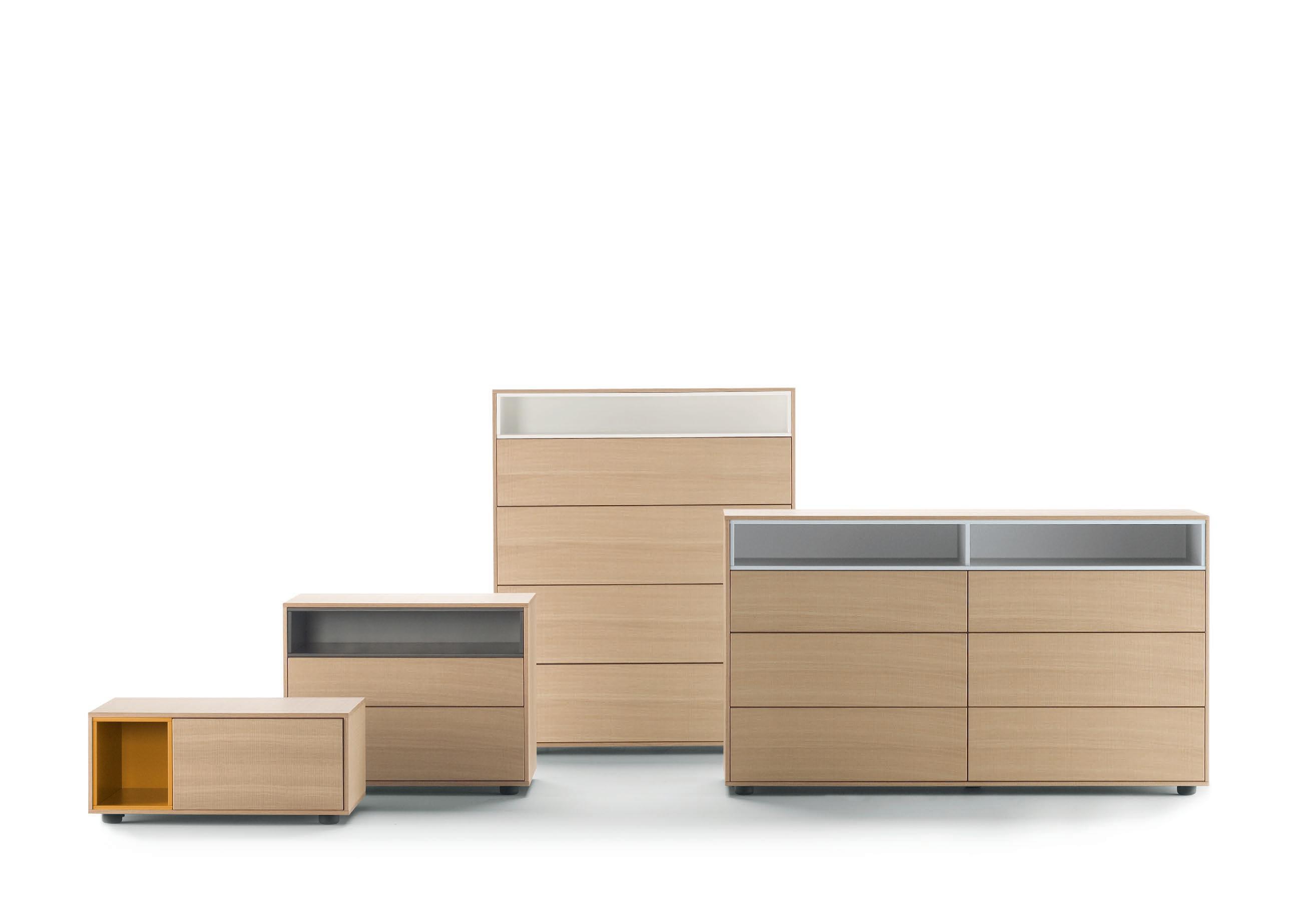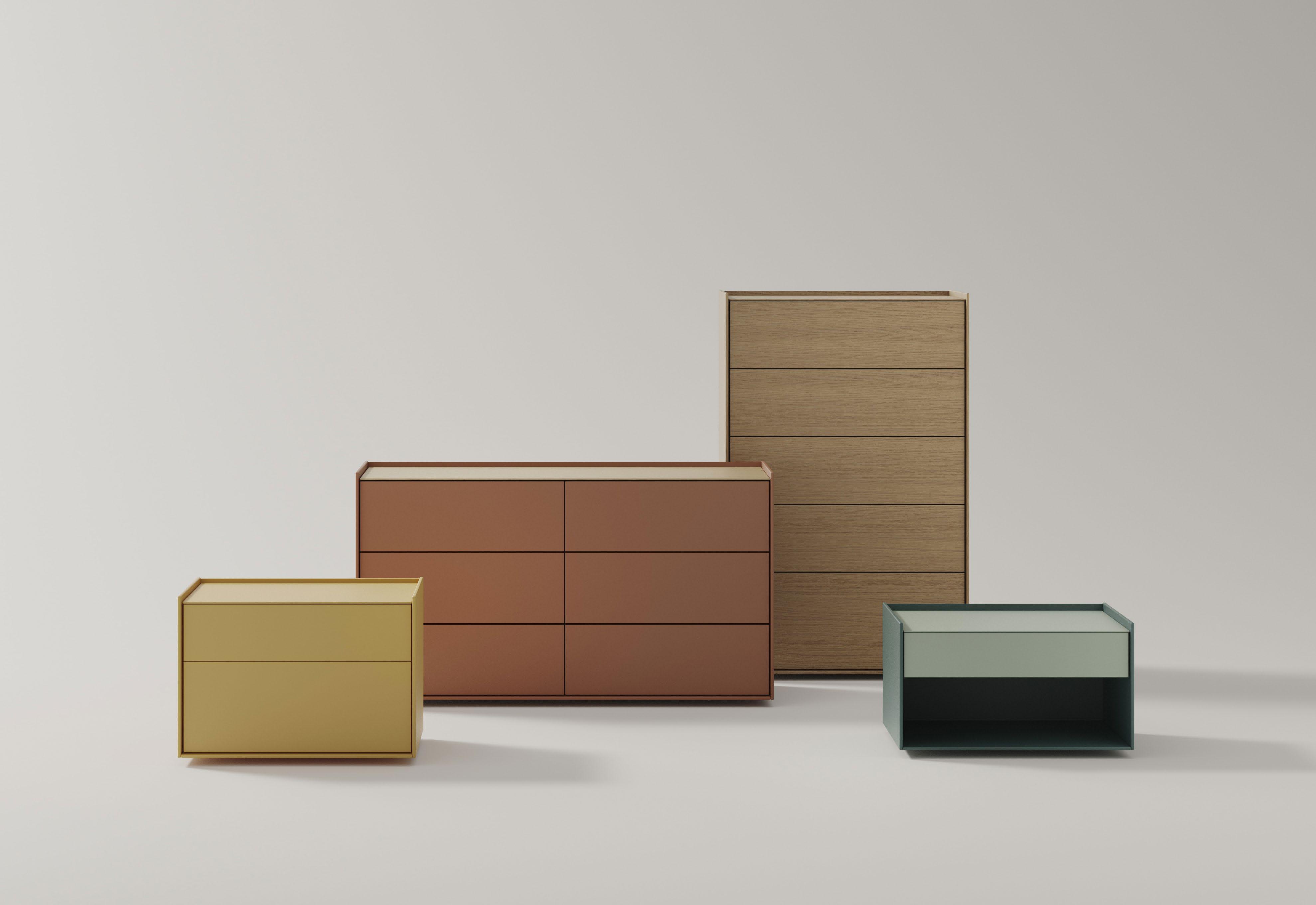 Bera is a collection of bedside tables, dressers and chiffoniers for the bedroom. The top and drawers can be finished in a different colour or wood to the main body, allowing for endless combination possibilities.