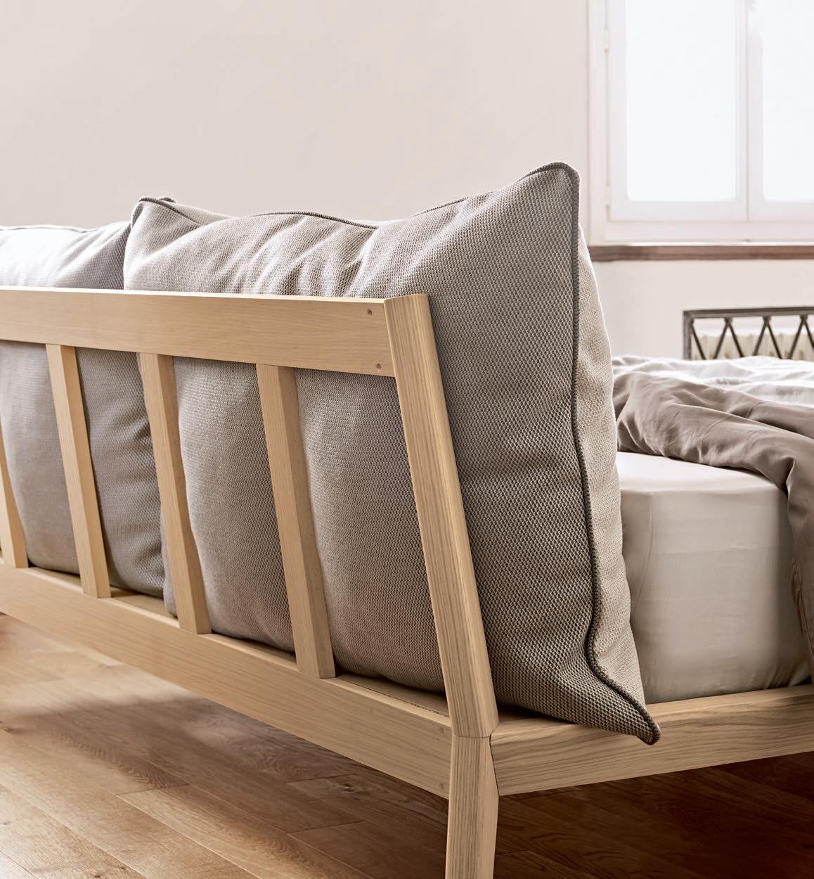 Close-up of the back side where the cushions are supported. Bora bed can be placed in the middle of a room. Detalle de la parte trasera donde apoyan los cojines. La cama Bora puede ir en la mitad de una habitación.