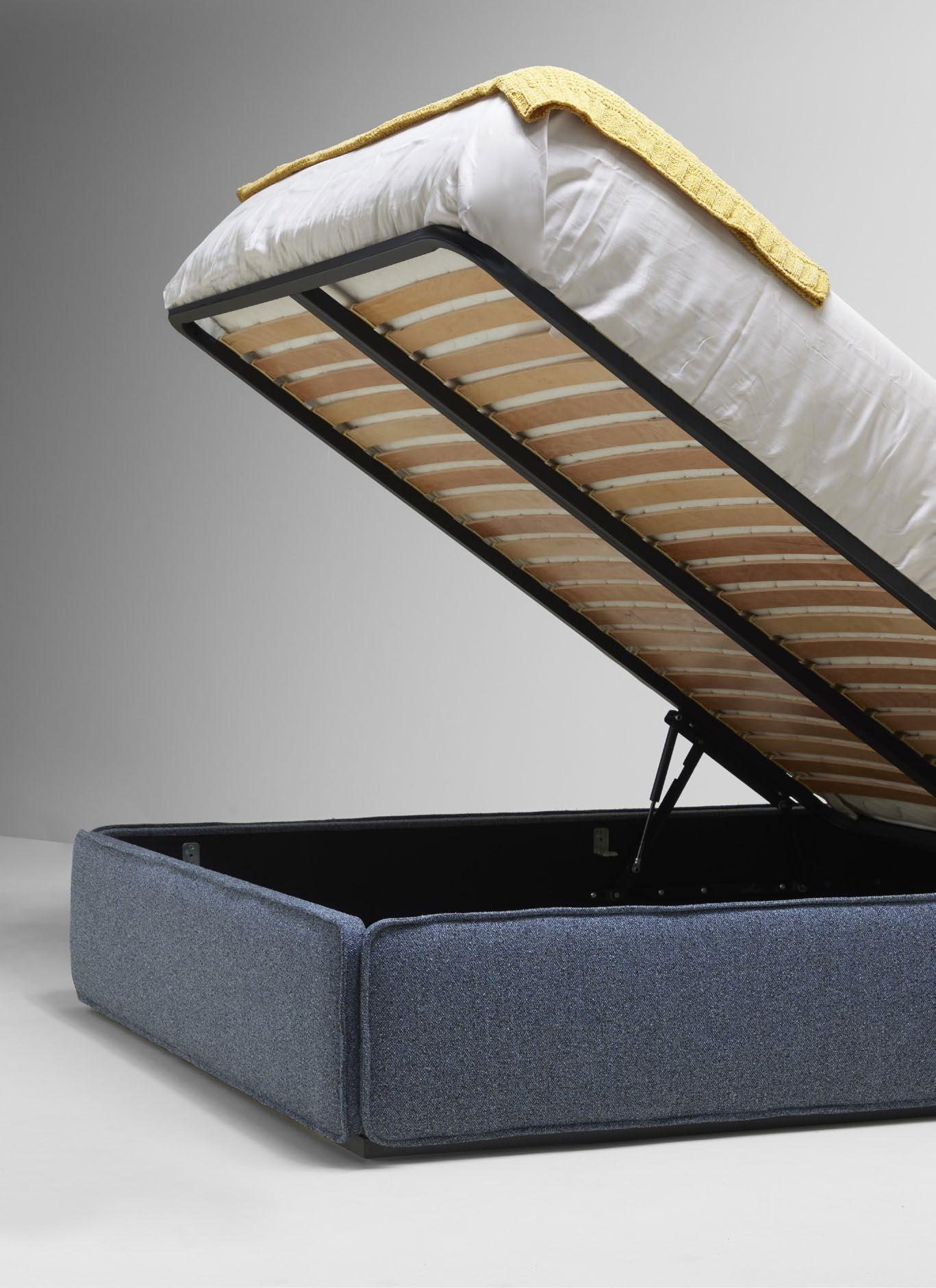 Detail of the lift-up frame of the Gala bed. It is also available with a fixed frame, without storage. Detalle del aro arcón de la cama Gala. También puede ser con Aro fijo, sin arcón.