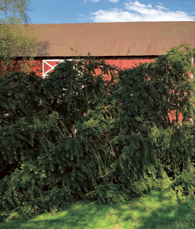 Gaute Grøtta Grav foran restene av treet som ble plantet samme år som han ble født, men som etterhvert tok for mye av sol og utsikt på eiendommen. "Jeg brukte 5 år på å bestemme meg - å hogge ned et så fint tre er nesten som arvesynd å regne". Det måtte både motorsag, god nabo og traktor med kran til for å legge det ned. Heldigvis har han ikke angret.