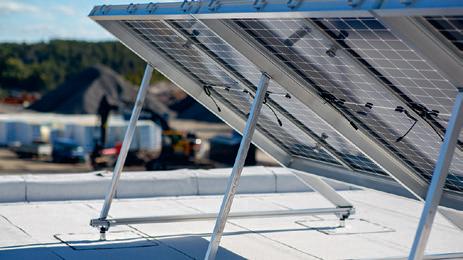Ifjor høst investerte betongprodusenten i solceller, og per i dag drives deler av bygget og produksjonen av egen solenergi fra anlegget på taket.