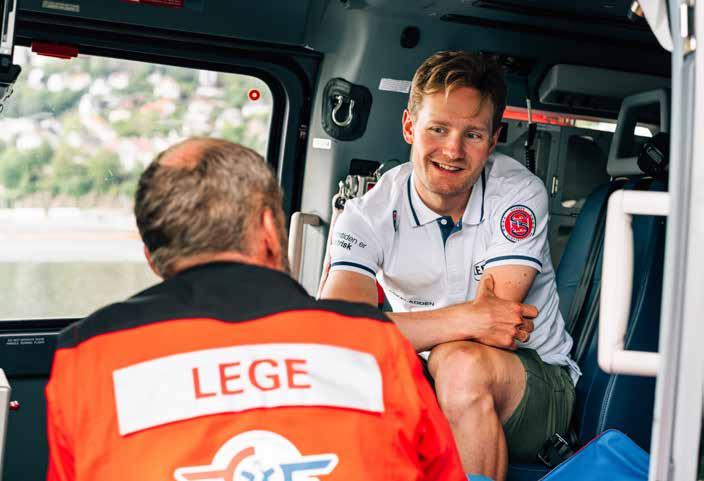 Og det er denne hjelpen vi i stiftelsen jobber med å stadig forbedre og utvikle. Med ditt bi drag kan vi fortsette denne jobben. Med støt te fra det norske folk har vi blant annet for sket på om det er mulig å diagnostisere både hjerteinfarkt og hjerneslag utenfor sykehus. Det kan du lese mer om på side 20 og 26. Målet er å få denne diagnostiseringen opp i luften. Jo mer og bedre «intensivavdeling» vi kan fly ut til pasienten, desto flere liv kan vi redde.