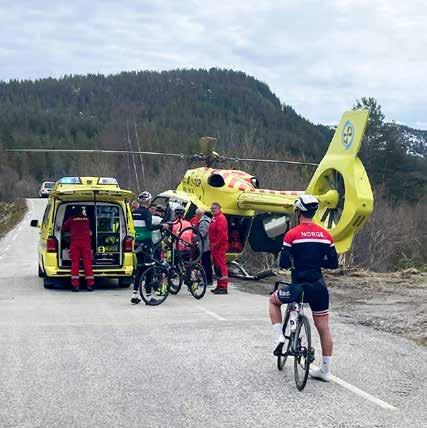 Med legebil og to ambulanser bemannet med lokalt ambu lansepersonell bidro Stiftel sen Norsk Luftambulanse med medisinsk beredskap under sykkelrittet Arctic Race of Norway i august. Utviklingshelikopteret var også på plass, og publikum fikk lov til å hilse på mannskapet og titte på helikopteret.