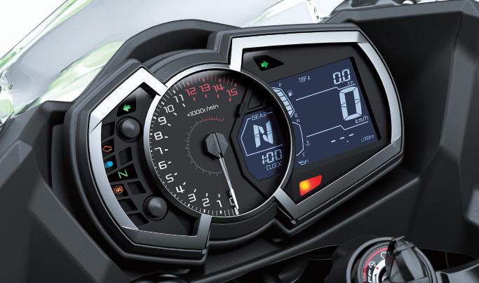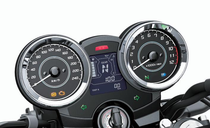 • BREMBO BREMSER FRONT • OHLINS BAKFJÆRING • SPESIAL FARGE & DESIGN • RUND LED-HOVEDLYKT • DUAL-DIAL INSTRUMENT MED MULTIFUNKSJONS LCD • EIKESTIL OG «TEARDROP» • TIDLØST DESIGN • Z1-INSPIRERT BAKRE DEKSEL OG BAKLYKT
