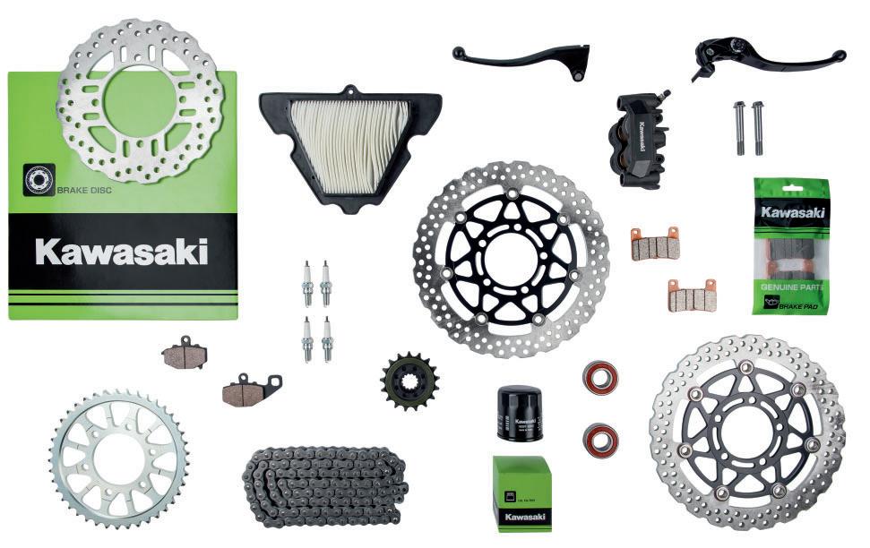 Når du ser «Kawasaki Genuine Products»-logoen er du trygg på at utseende, ytelse og verdien av din dyrebare motorsykkel opprettholdes. Originaldeler eller originaltilbehør, de enkle fakta er de samme. Kvalitet, håndtverk og omsorg er kombinert for å levere den tryggheten som bare vi kan levere. Dette for å forbedre den unike Kawasaki opplevelsen.