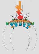 Figurene over, med en tradisjonell hjelmkonstruksjon til venstre og en hjelm fra Shark til høyre, viser den markante forskjellen på hvordan ulike hjelmer absorberer ytre påførte krefter.
