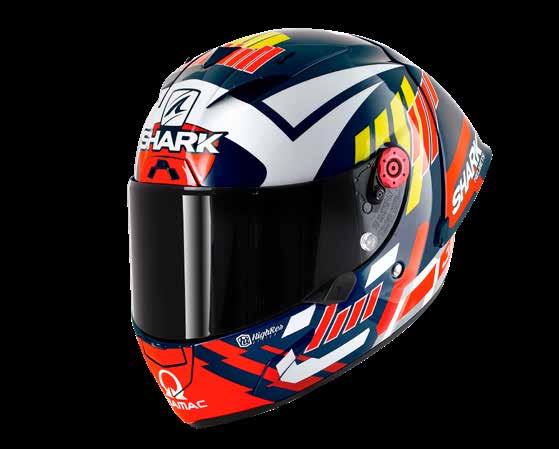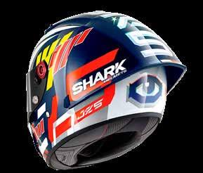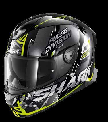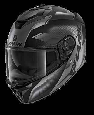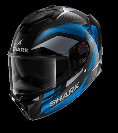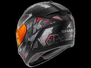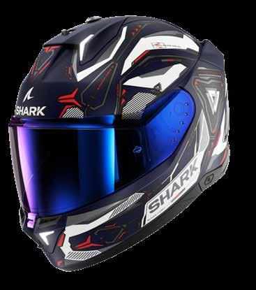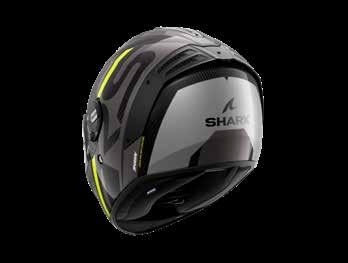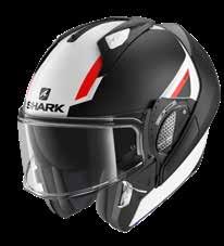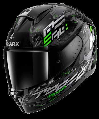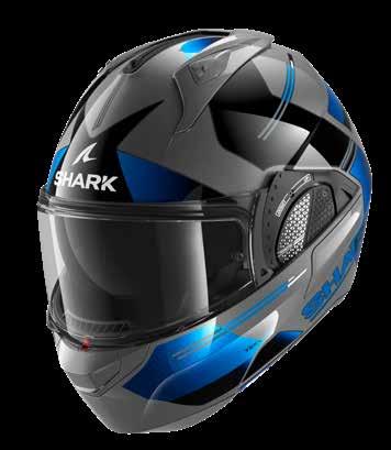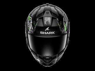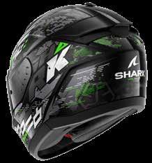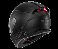 LED lys “3D morpho” kinnbeskyttelse Fås i ekstra stor størrelse Aerodynamisk profil Integrert vindbeskyttelse Dobbel godkjenning Anti-dugg og anti-ripe visir Anti-dugg visir Sanitert Optisk klasse 1 visir Shark Nødfjerningssystem Resirkulert fiber fra brukt Polyester 22/06 godkjenning