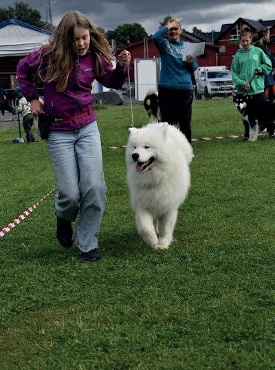 pause før siste økt. Samtidig er «barn og hund» en viktig rekruteringsarena for hundesporten, både når det gjelder utstilling og hundesport generelt. Det har heldigvis polarhundefolket skjønt! Det er fler folk rundt ringen, mer applaus og interesse når de yngste får prøvd seg.