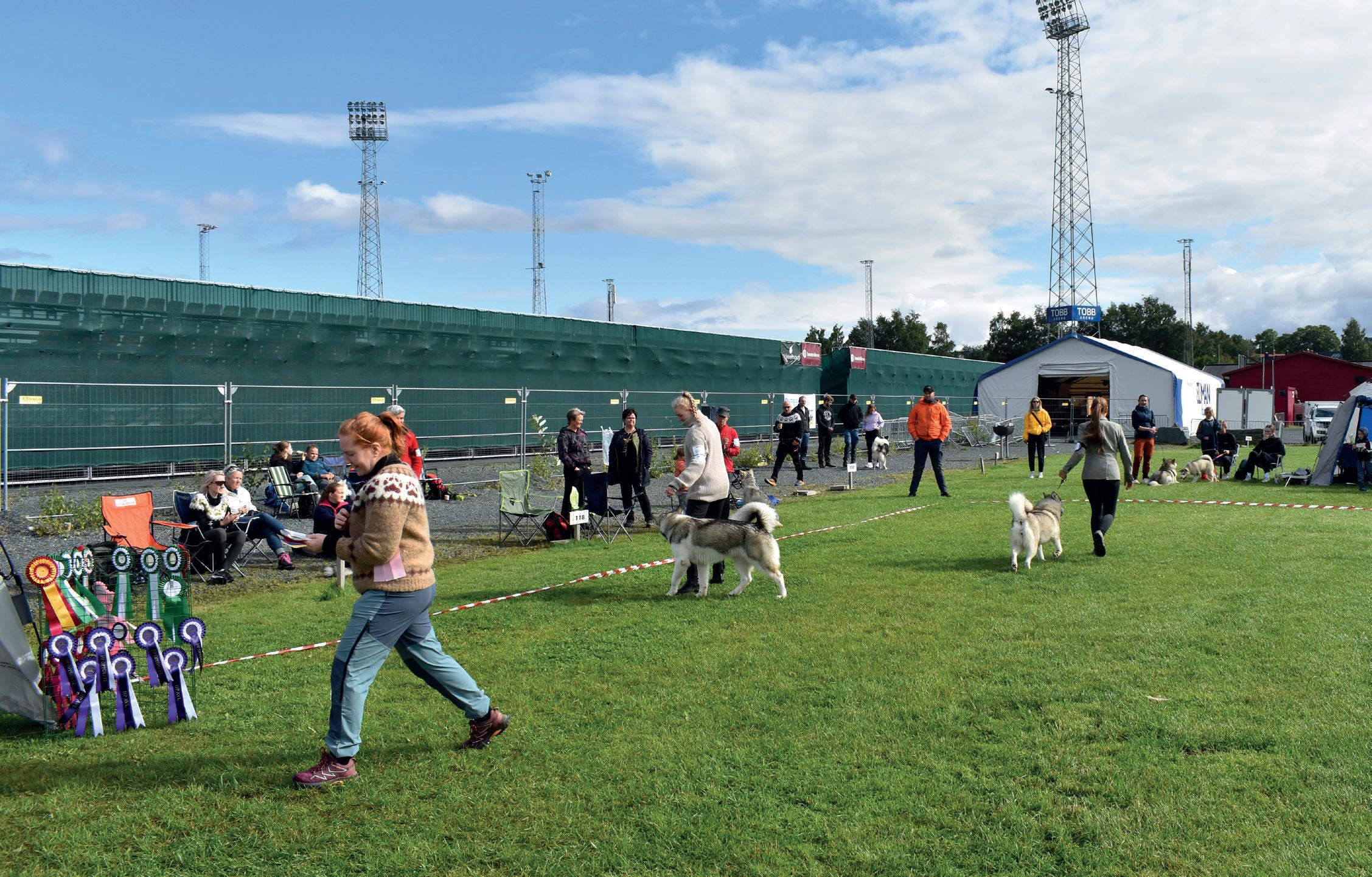 Det er fint å se hvor godt polarhundene tilpasser seg handleren sin og løper rundt i ringen som om det er noe de har gjort mye. Slik er det nødvendigvis ikke, mange av disse hundene hadde nok sin debut i ringen sammen med familiens yngre garde. Alle de ti deltagerne gikk