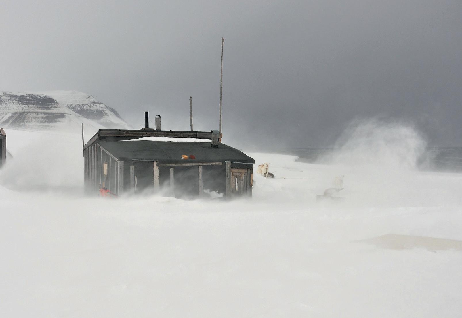 På Kapp Wijk er det et temmelig moderne hus der Soleim har bodd, men dette er selvfølgelig låst og gjort isbjørnsikkert. Heldigvis skal den gamle opprinnelige fangsthytten som fortsatt står på stedet, være ulåst og beboelig. I tiltagende vind kjører vi derfor den gjenværende halvannen milen ut dit. For oss er Kapp Wijk et trygt sted å ri av kommende storm, samtidig som vi ligger lett tilgjengelig for uthenting med båt. Vi ser nå uthenting som den mest sannsyn-