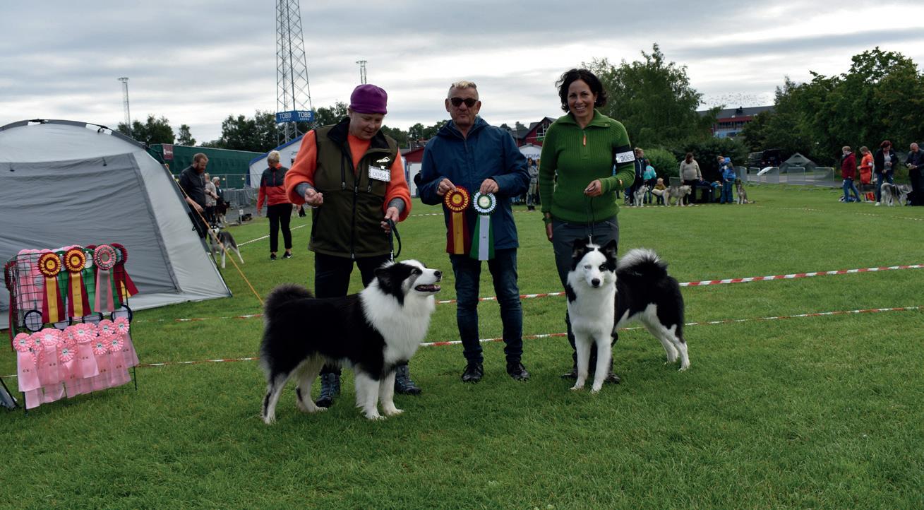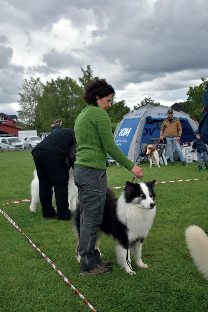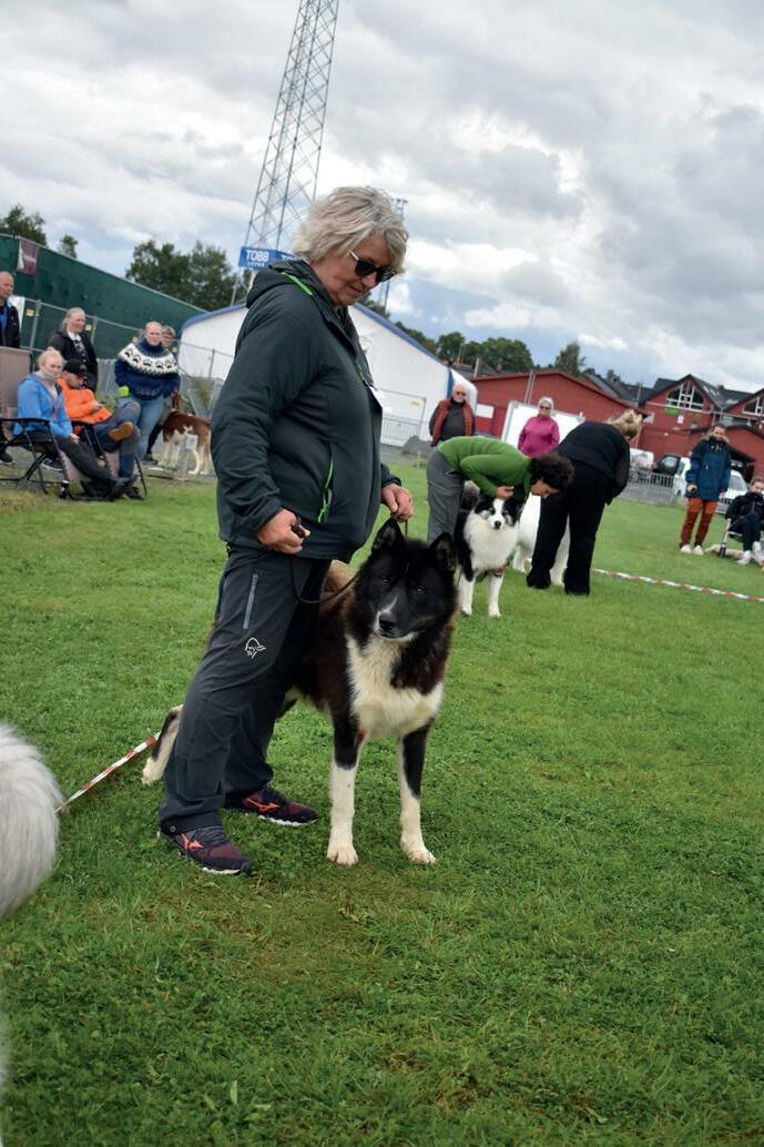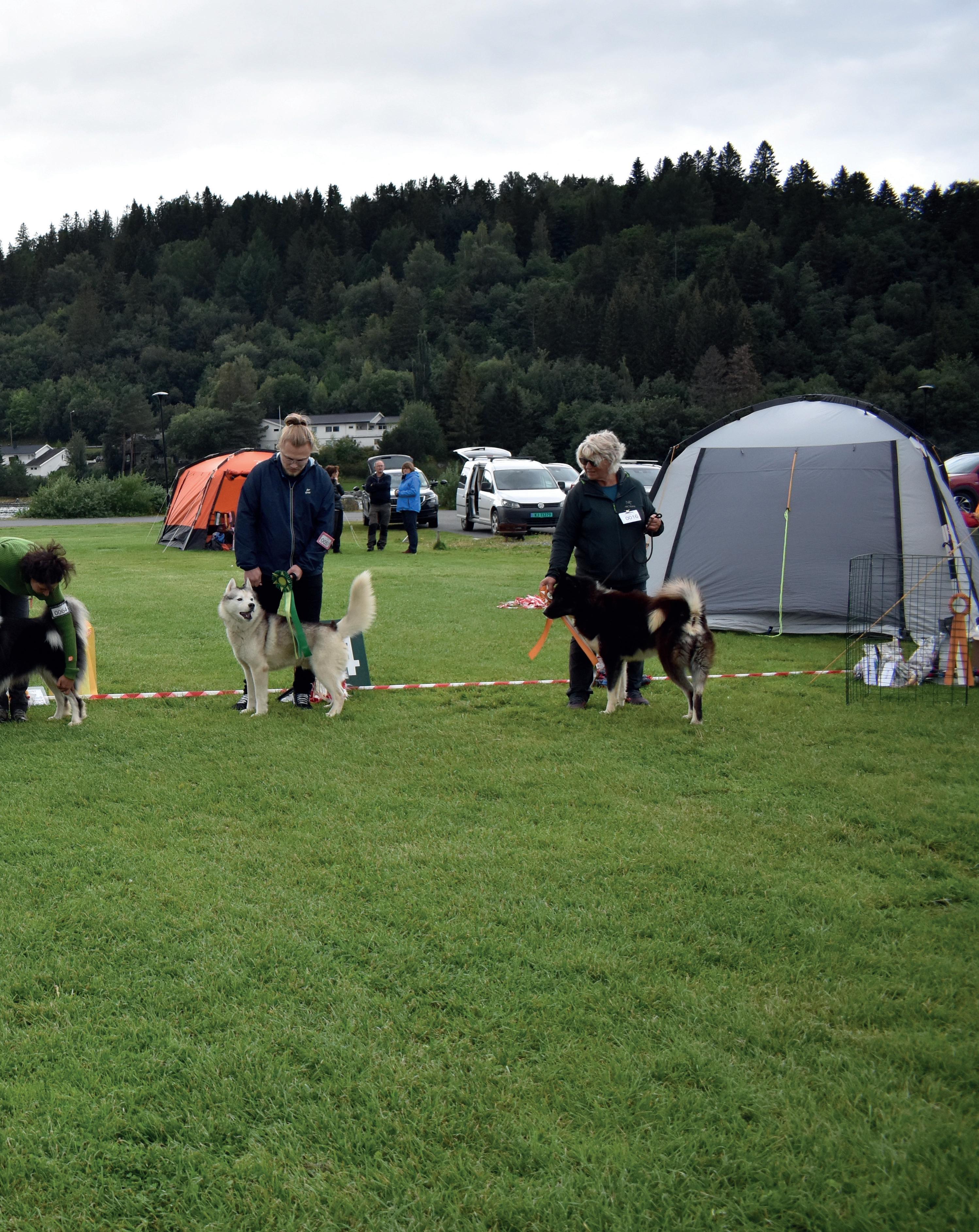 sund. Noen grønlandshundeiere ga beskjed om slakk line og vask hunden før du går i ringen. Det siste kommenterte dommeren. Til mitt forsvar sa jeg at sunnmøringene hadde lagt utstillinga på feil tid. Ikke mulig å kombinere utstilling med molteplukking i Trøndelag to dager tidligere. Fram til da var han i største laget, men det ga hun seg på da hun fikk høre hva jeg drev med. Det ble litt prat i ringen til hundens store irritasjon. Den løftet beinet og markere på dommerens bein. Til utstillers store overraskelse konstaterte hun at «det er sånt som skjer». Det som kanskje har betydd
