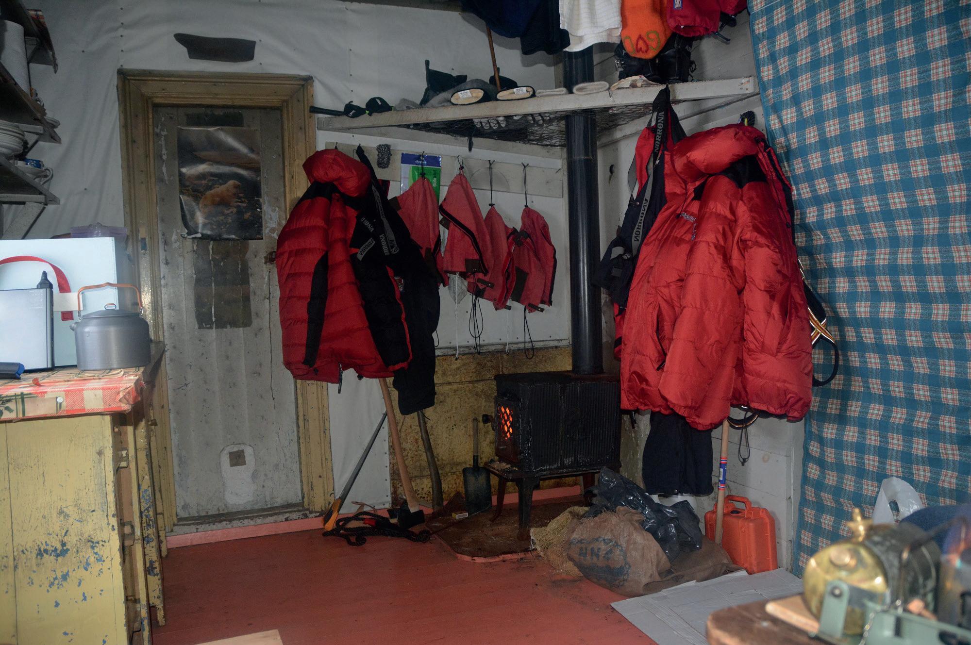 I denne gamle hyten fra 1936, bygget av legendariske Arthur Oxaas, tar vi en grundig debriefing av turen så langt. Hva var situasjonen nå? Hva kunne vi gjort annerledes? Hadde vi tatt avgjørelser som var